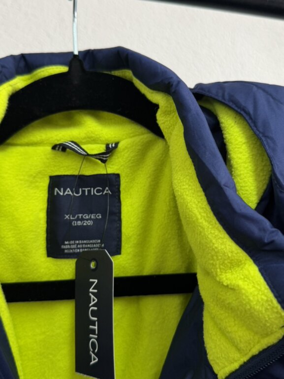 Chamarra marca Náutica, talla XL de niño, queda perfecto a XS de adulto , nueva sin detalles, puffer Jacket, color azul marino, relleno en poliéster, sin detalles, interior en tela caliente