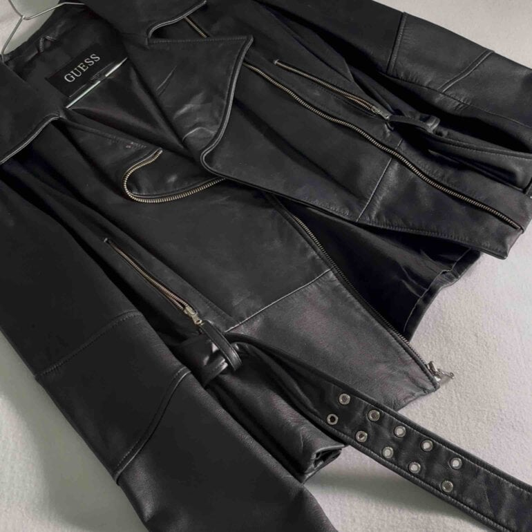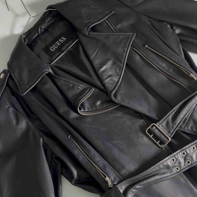Chamarra Negra de piel Guess piel genuina Original Tamaño L