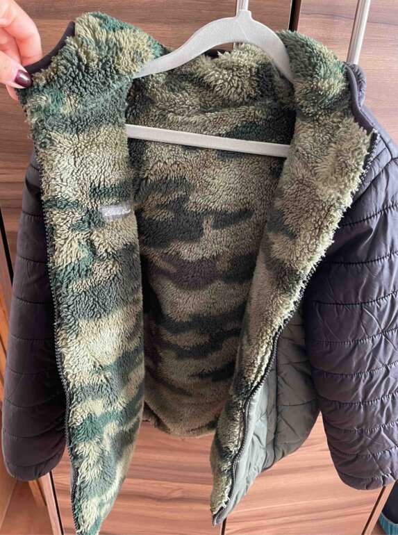 Chamarra para niño marca Eddie Bauer es reversible tipo borrego, está en excelente estado, se usó muy poco, es súper calientita y muy suavecita.