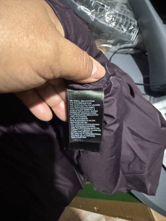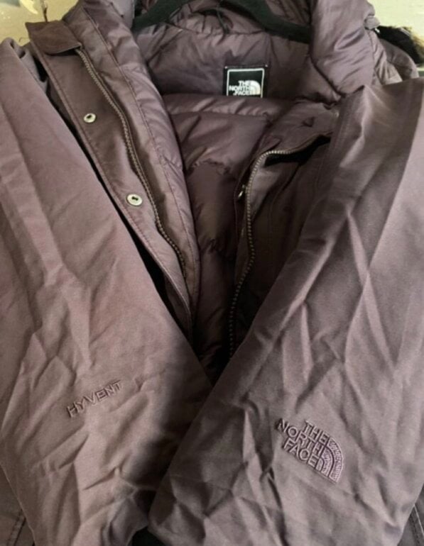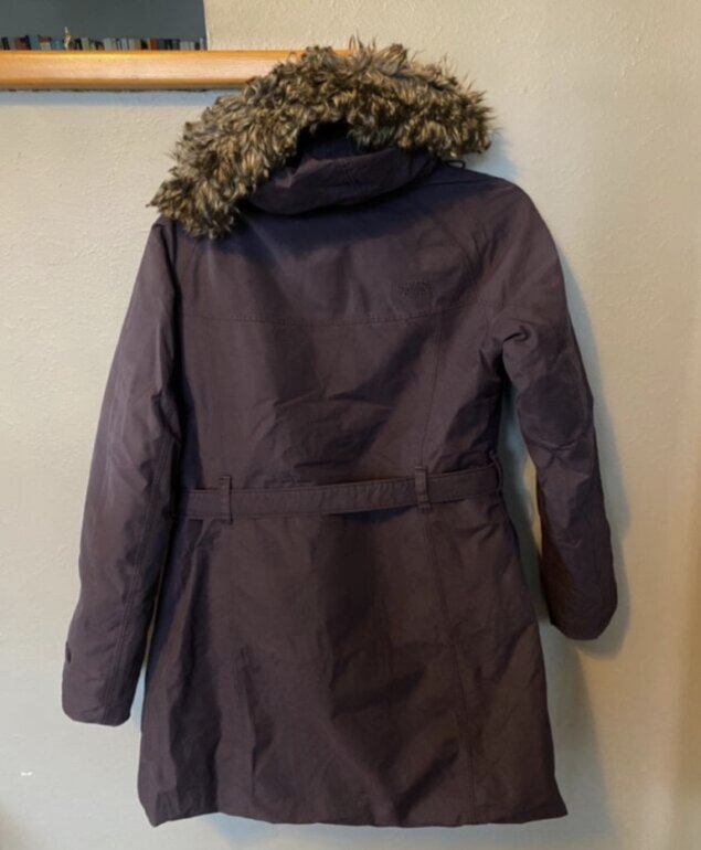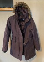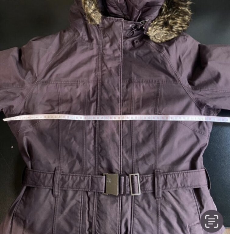 Hermosa chamarra color vino/uva, talla mediana, en excelente estado. Relleno de pluma de ganso, que soporta muy bajas temperaturas. La chamarra -además- es impermeable. Los cierres, el cinturón y la gorra desmontable están en perfecto funcionamiento. Medidas: Muñeca a hombro: 60cm; Axila a axila: 51 cm; largo: 81 cm.
