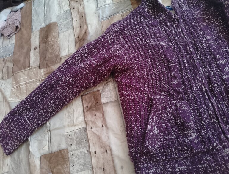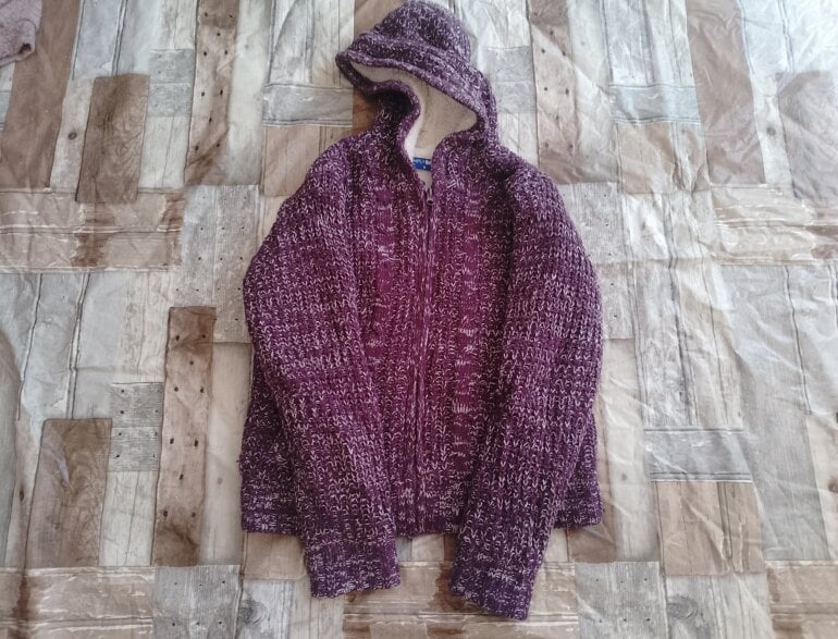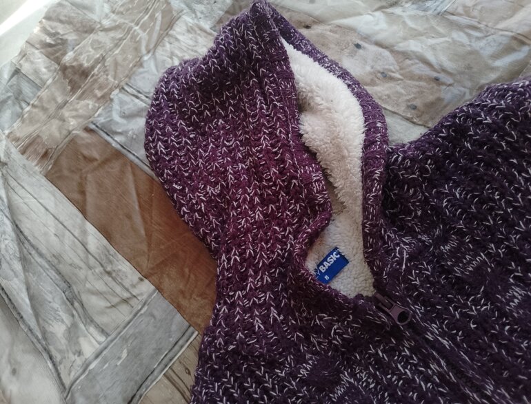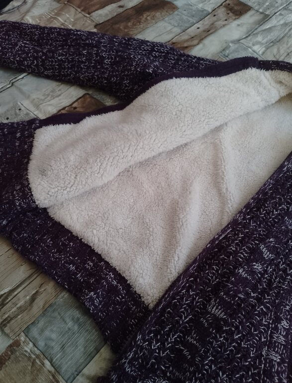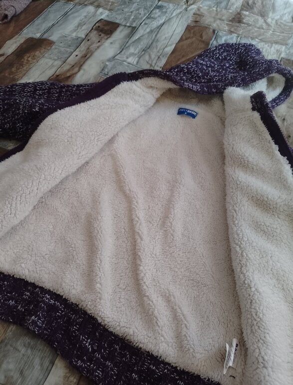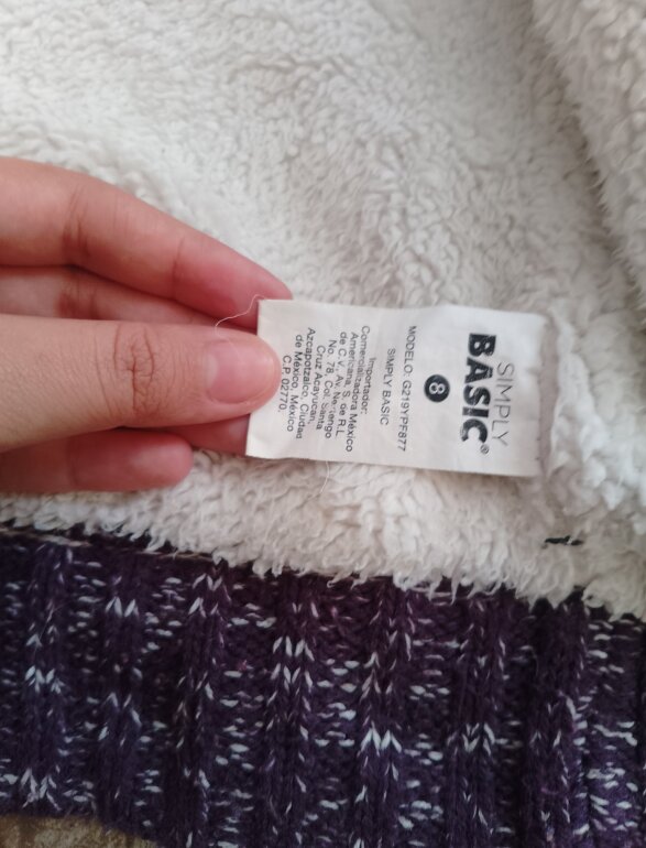 Chamarra polar con peluche tanto en gorro como en chamarra el diseño es como tejido