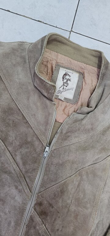 Una chamarra vintage de lana con piel con detalles visibles en las fotos