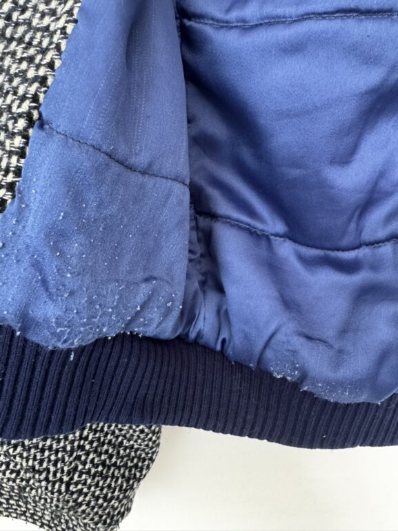 En muy buen estado general, solo tiene ligeras bolitas en la parte baja del forro (no visibles al usarla)