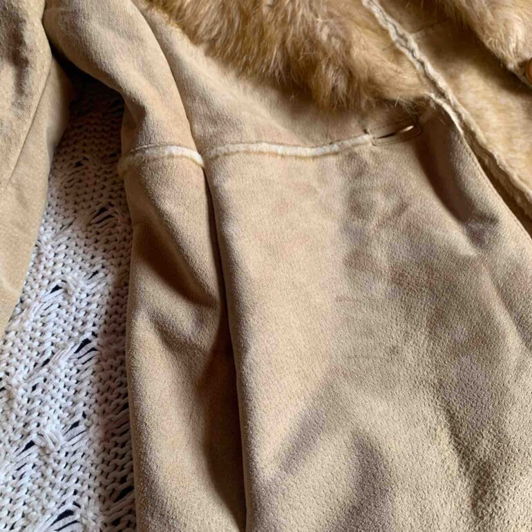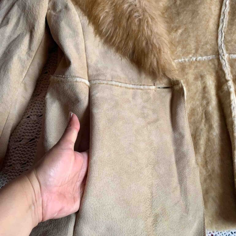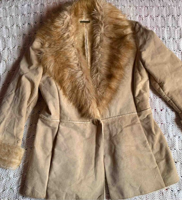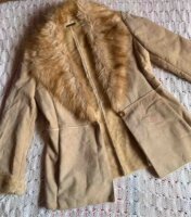 Chamarrita estilo vintage de piel con pelo sintético al interior , muy calientita talla s/M hombros 38 cm y pecho 45 cm. Muy cuidada