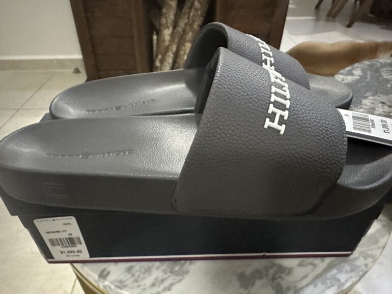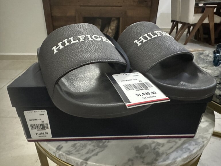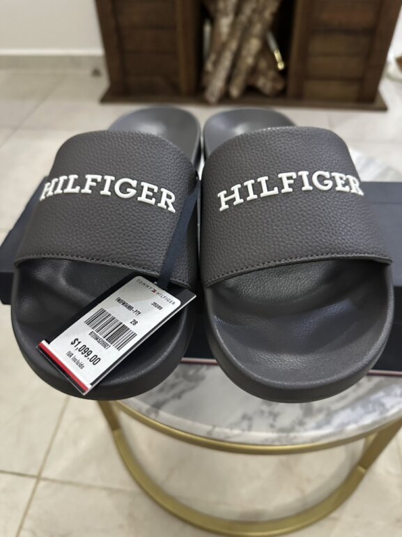 Slides chanclas Tommy Hilfiguer grises, nuevas fullset, sin uso, precioso color gris, precio de tienda $1099, con nosotros $750, talla 28 pero le hace a un 27.5, siéntete libre de ofertar