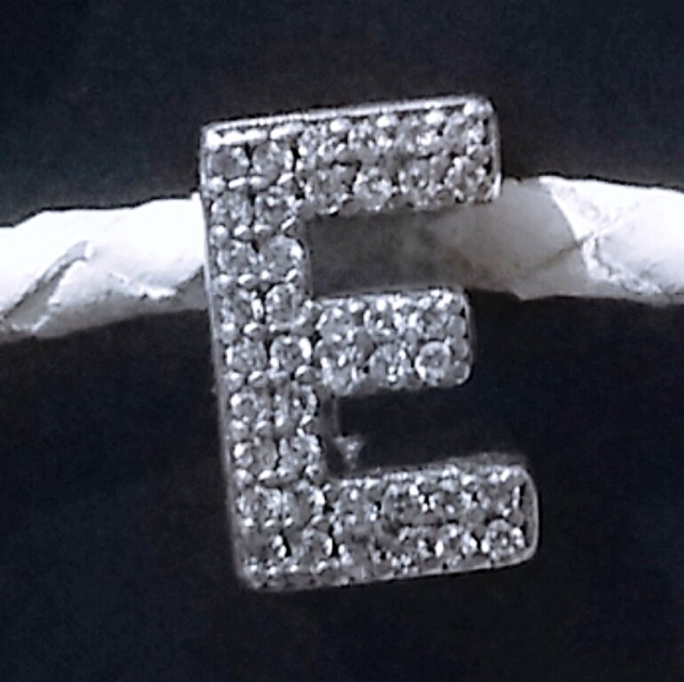 Hermosa letra E con cristales, de plata S925. Visita mi clóset para más cosas encantadoras porque en paquete es más barato