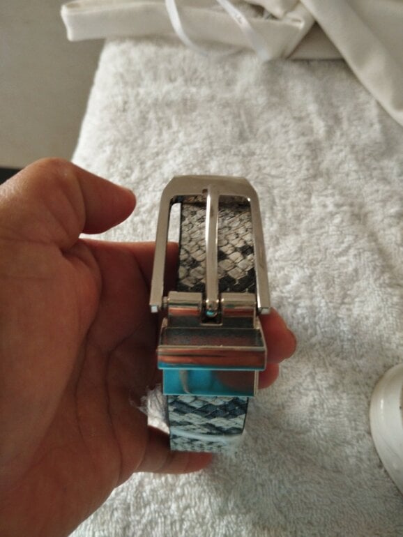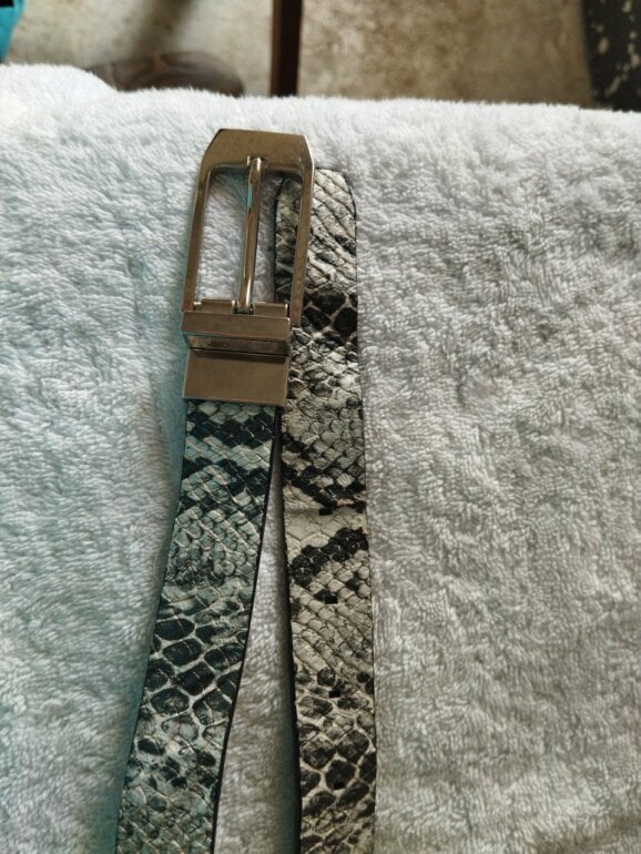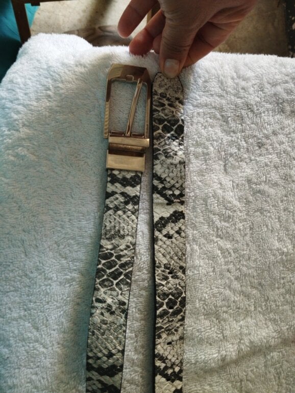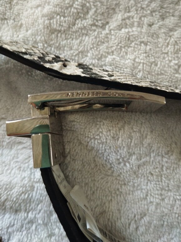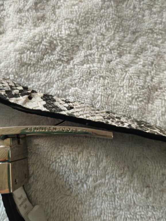 Cinto de cuero con estampado de pitón blanco y negro muy bonito