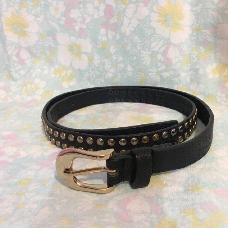 Cintó delgado color negro con detalles de estoperoles indispensable en tu closet *mide 101 cm Recuerda querida compradora que la aplicación da una fecha límite para el envío el cual lo hago desde cdmx aún así te aseguro enviar tu compra a la brevedad