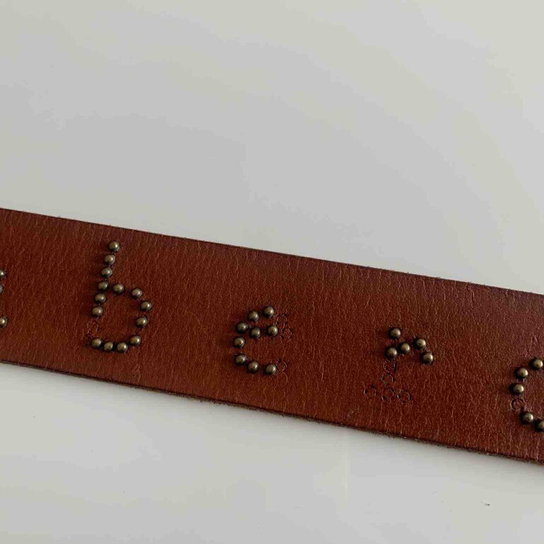 Cinturón café de piel talla S, original abercrombie. Mide 90 cm de largo, esta en excelentes condiciones, únicamente se le cayeron unas puertitas a dos letras, pero el resto está intacto.
