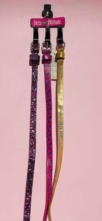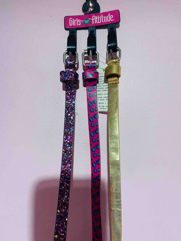 Paquete de 3 cinturones glitter, animal print y dorado .