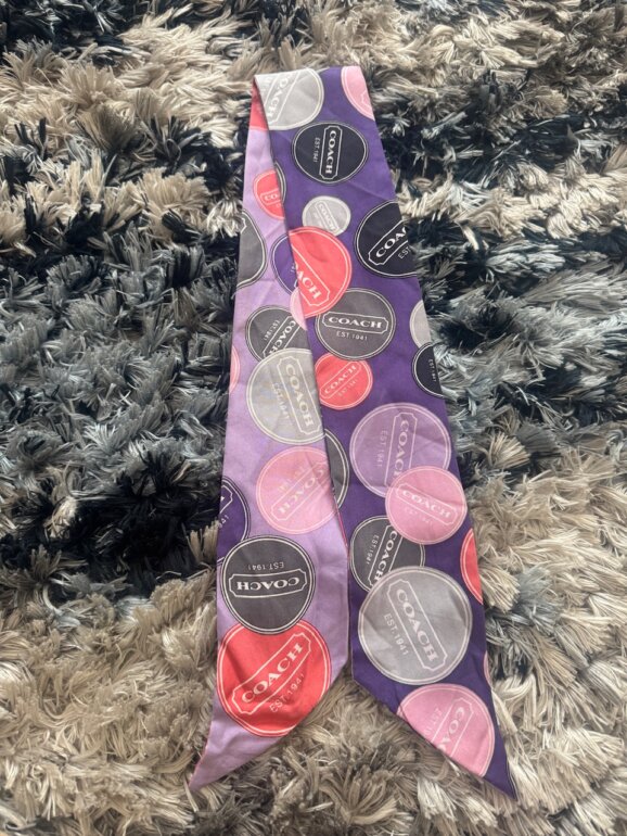 Marca Coach, con el logo de la marca alternando con modernas combinaciones . Para crear looks lindos y divertidos, usa tu ponytail de la marca coach en tu cabello o en tu cuello o si prefieres como pulsera.