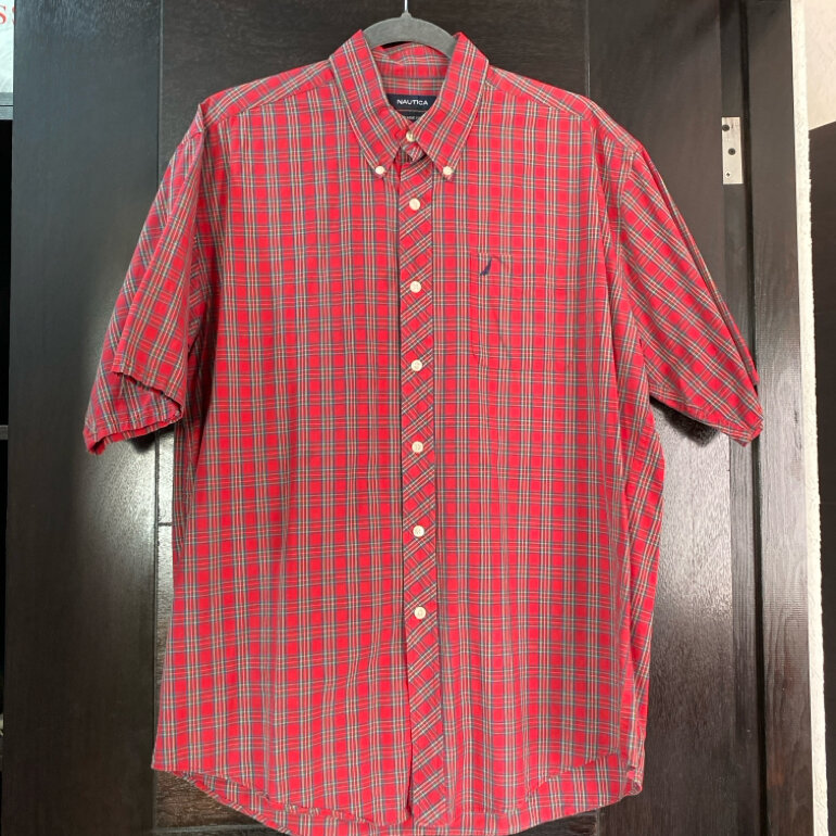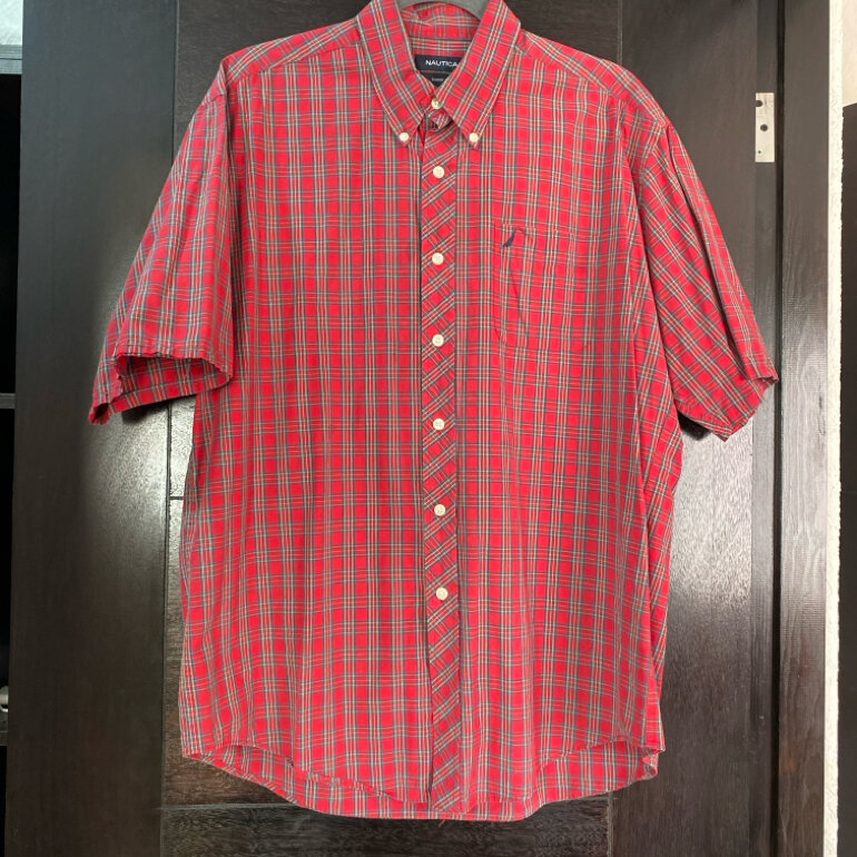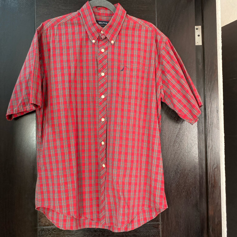 Camisa caballero marca nautica a cuadros, manga corta, Medidas de axila a axila 63 cams, largo 72 cms, ancho manga 22 cms