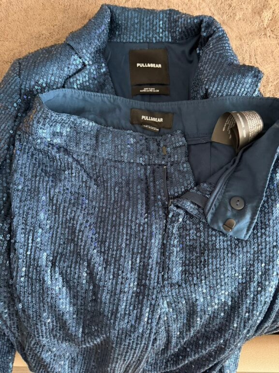 Set de lentejuelas azul oscuro, talla del pantalón s, talla blazer xs, solo lo usé una vez y está en perfecto estado