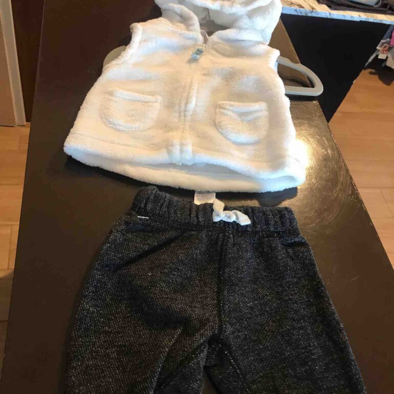 Pantalón tipo mezclilla pero la tela es suave con chaleco afelpado calientito talla3 m nuevo sin etiqueta