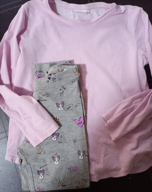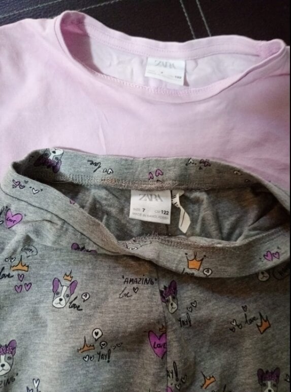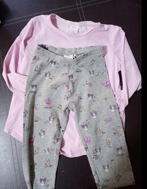 * conjunto de legging gris con estampado de perritos y playera lila manga larga ZARA talla 7