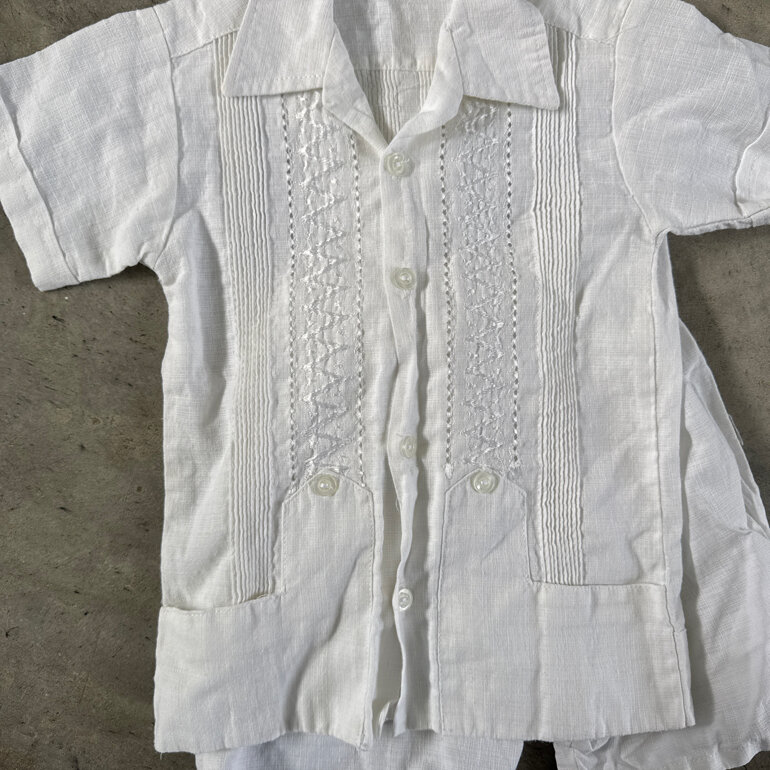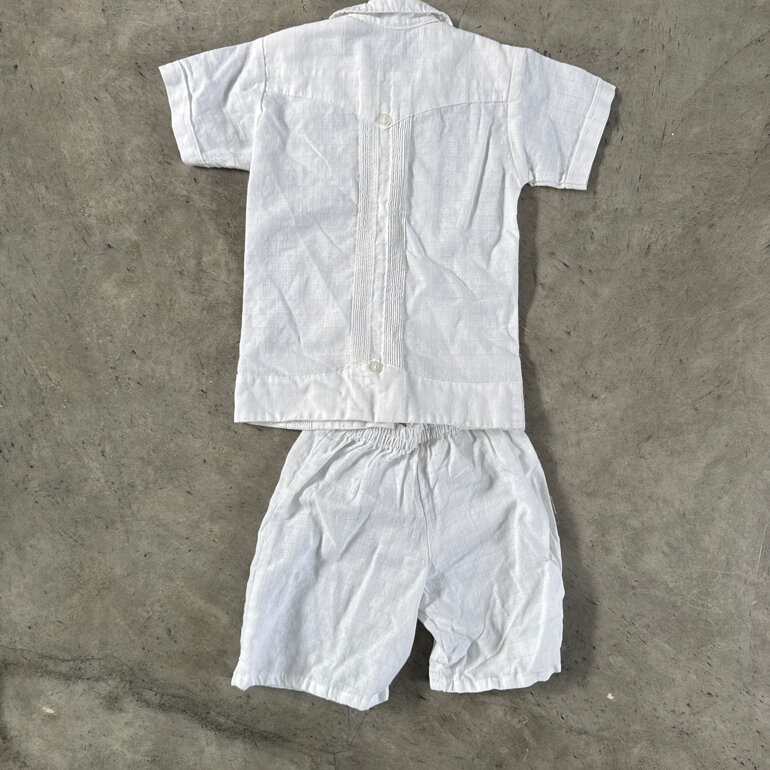 Conjunto de lino blanco de niño. Se usó una vez pero el cierre del short se salió por eso no se volvió a usar, pero tiene reparación muy fácil. Es 100% lino