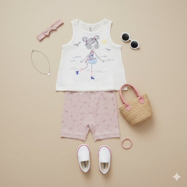 Lindo conjunto armado de diferentes marcas, de 2 pz playera con bonito diseño sin mangas fresca y short marca Disney.