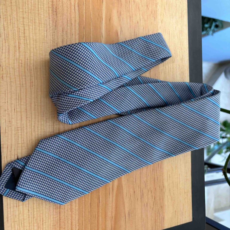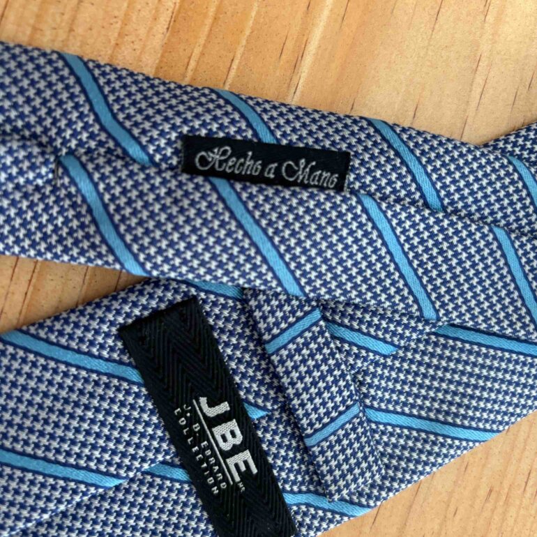 Corbata azul en buen estado con manchitas de café hecha a mano