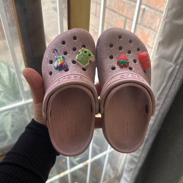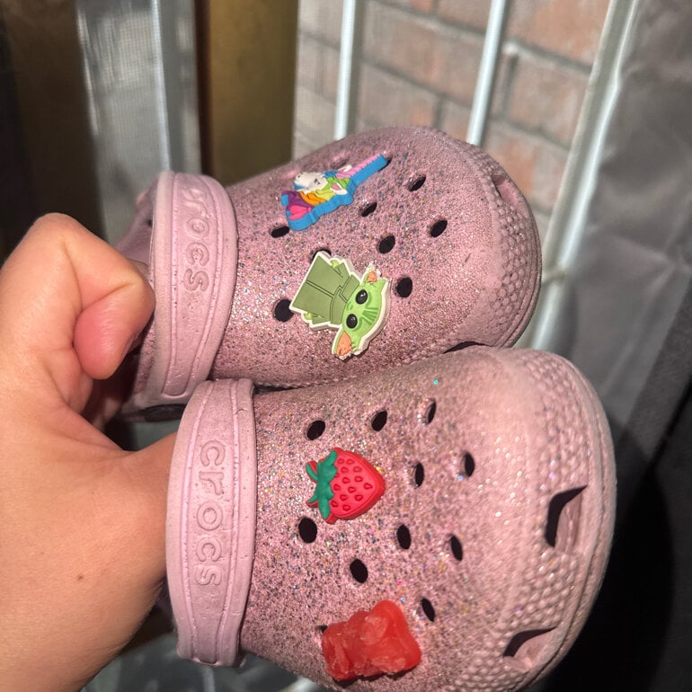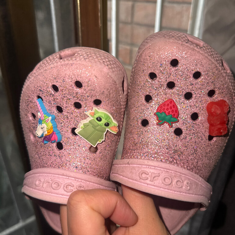 Crocs Glitter para niña, vienen con los pines, en las fotos podrás observar con detalle las crocs.