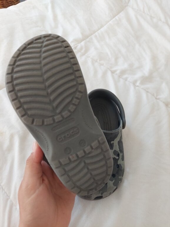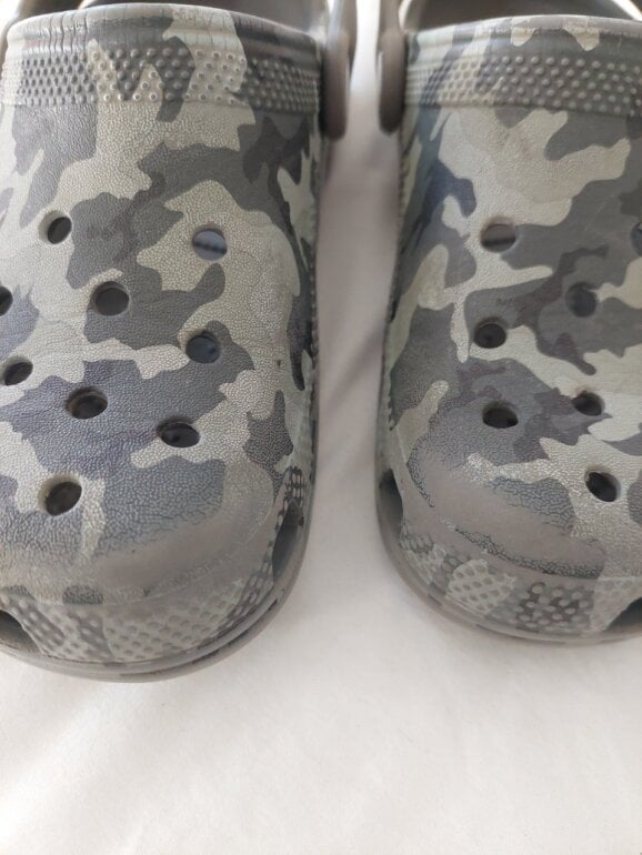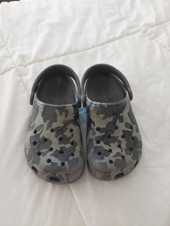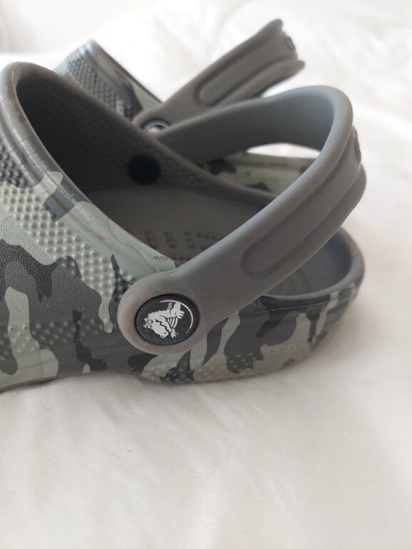 Crocs de niños con estampado de camuflaje en color gris 🩶