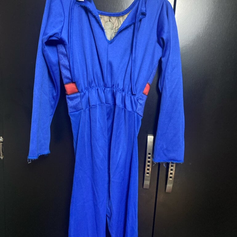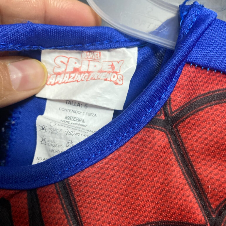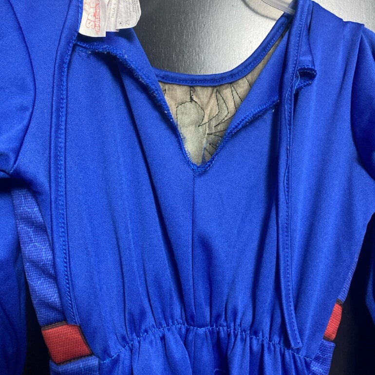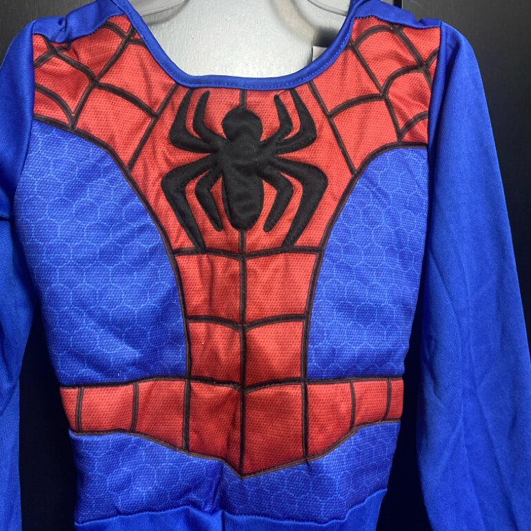 Bonito disfraz para niño talla 5/6 de Spiderman con resorte de ajuste en la cintura , cuenta con ajuste al cuello y manga larga .