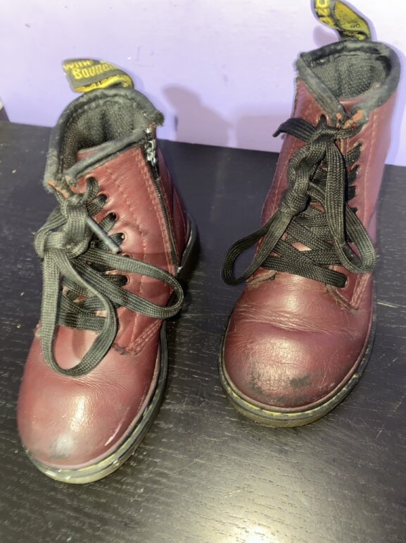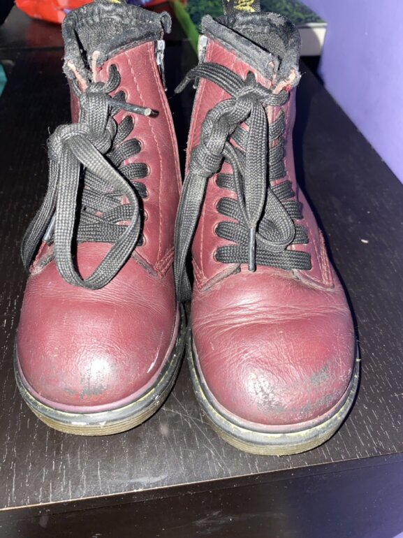 Botas Dr. Martens originales, desgaste en la punta de la bota, no afecta su uso, suela en buen estado, tienen cierre, la agujeta tiene doble nudo porque estan muy largas