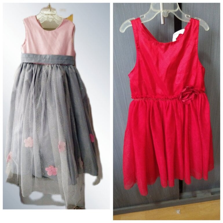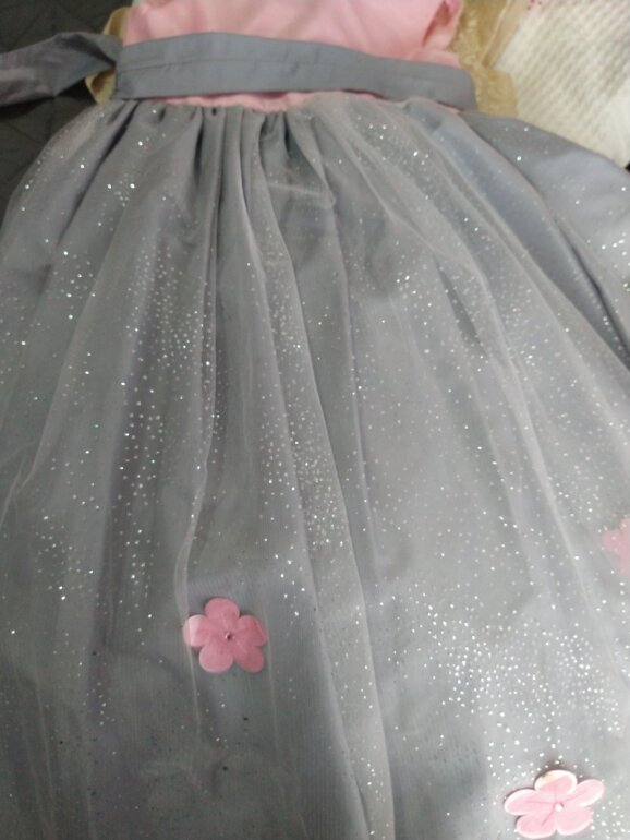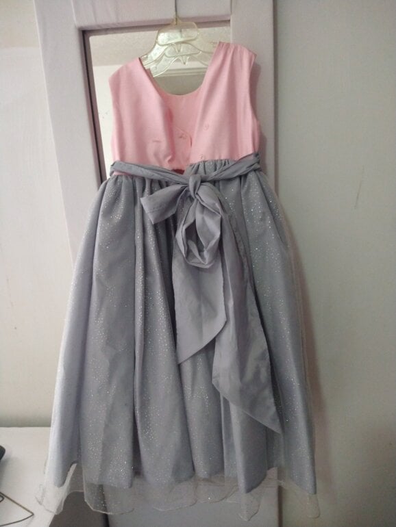 Vestido rosa con gris largo, tiene 2 puestas