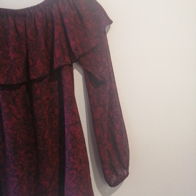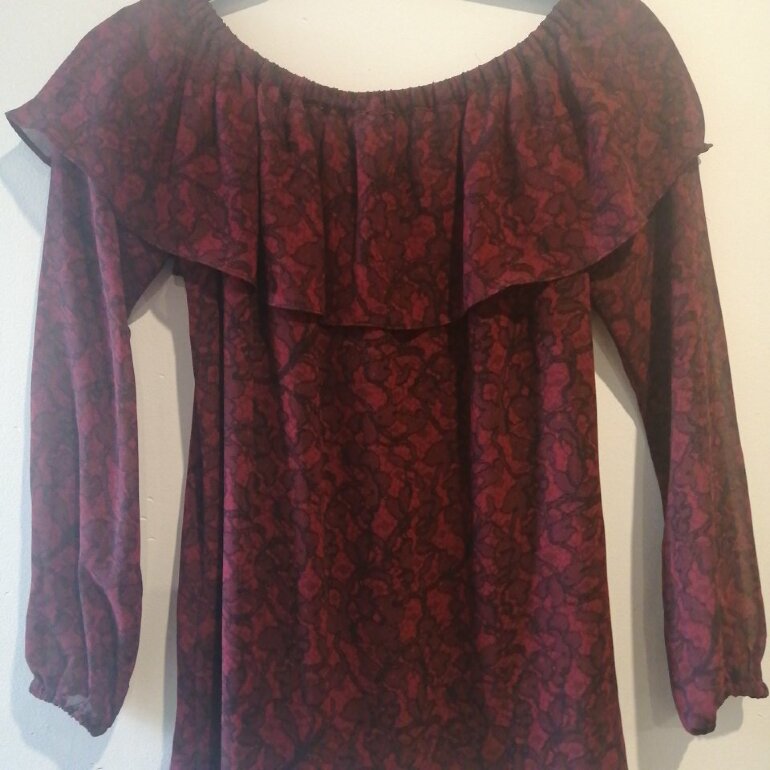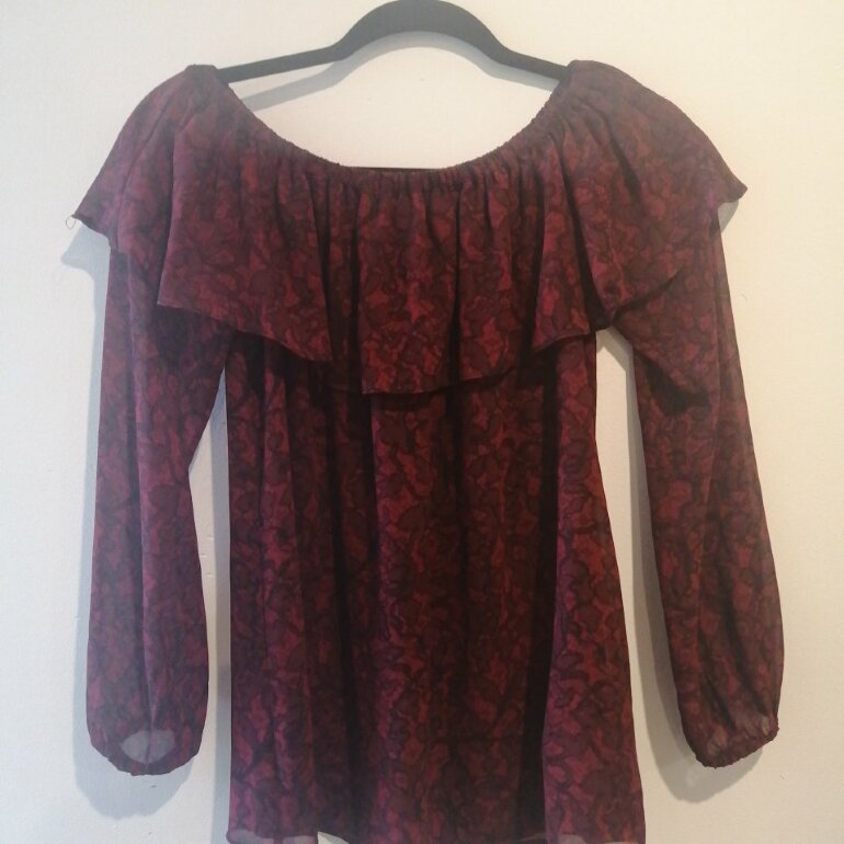 Elegante Blusa con resorte para bajar a los hombros y olan en color vino, exlente para pantalón o jeans, la use 1 vez así que está prácticamente nueva 💯✔️