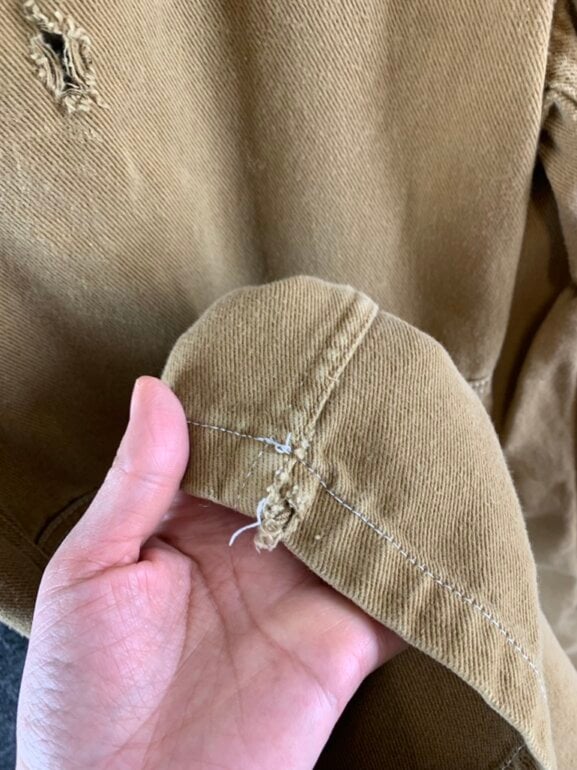 Un detalle en la parte de la bastilla y tambien un agujerito en la parte de enfrente debajo del bolsillo ver foto 3