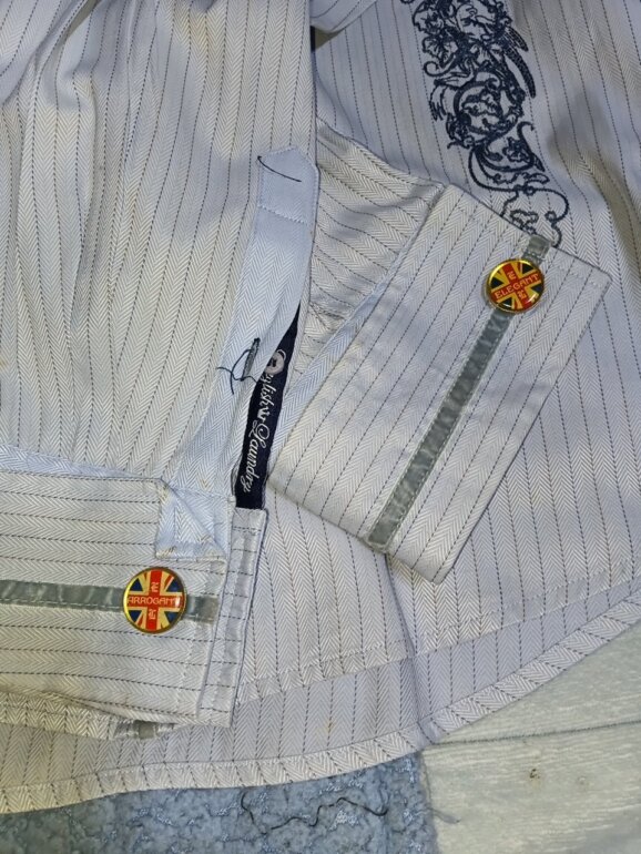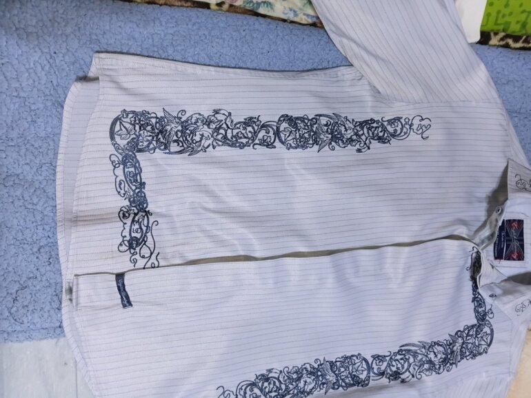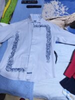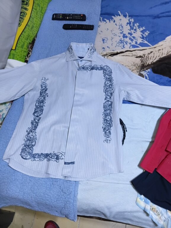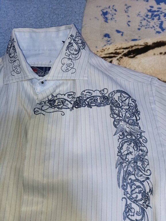 Camisa de vestir manga larga con vordado soberbio de aves flores muy lujosa la camisa a también cuenta con marcoenillas integradas