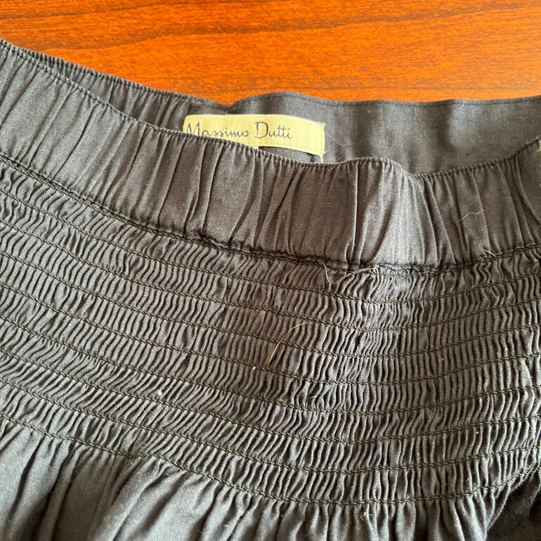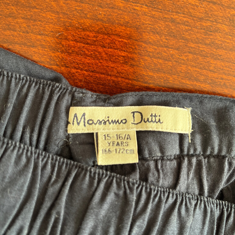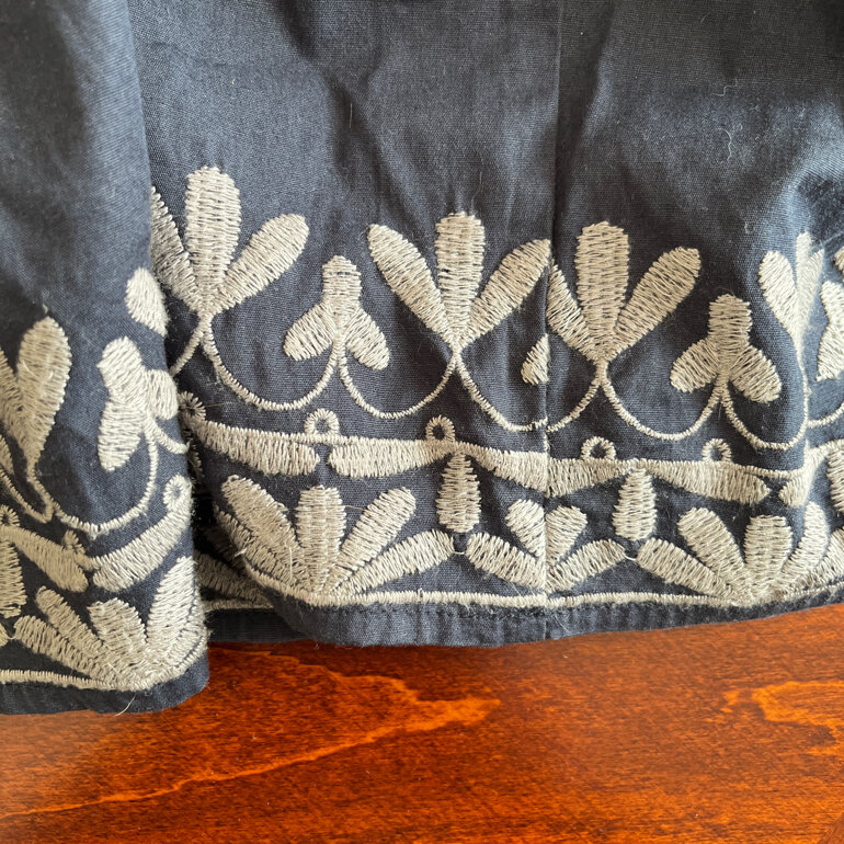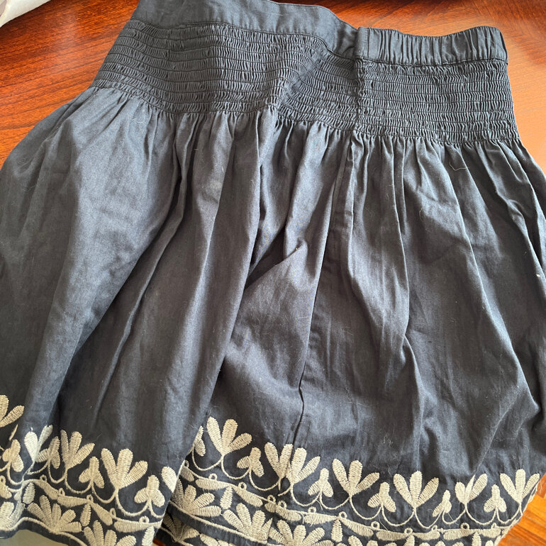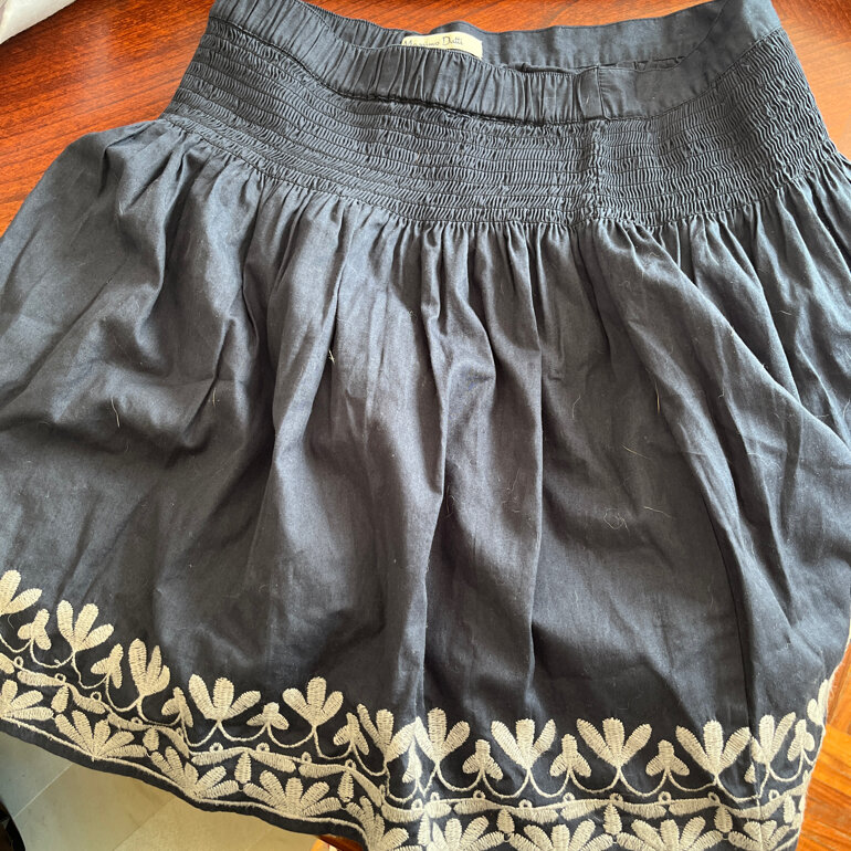 Falda algodón color marino, Massimo Dutti, talla 16, jovencita, resorte en cintura, bordado al final