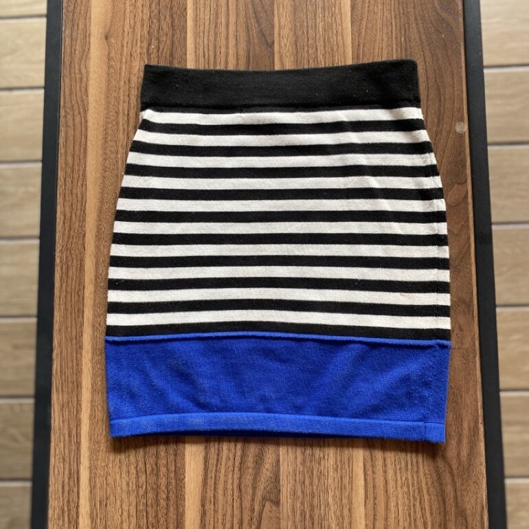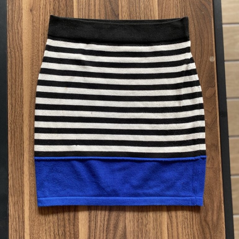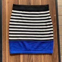 Hermosa y nueva falda pegada de rayas negro con blanco y hasta abajo azul rey, súper bonita y cómoda la tela es tipo suéter pero firme y estira y amolda padrisimo!