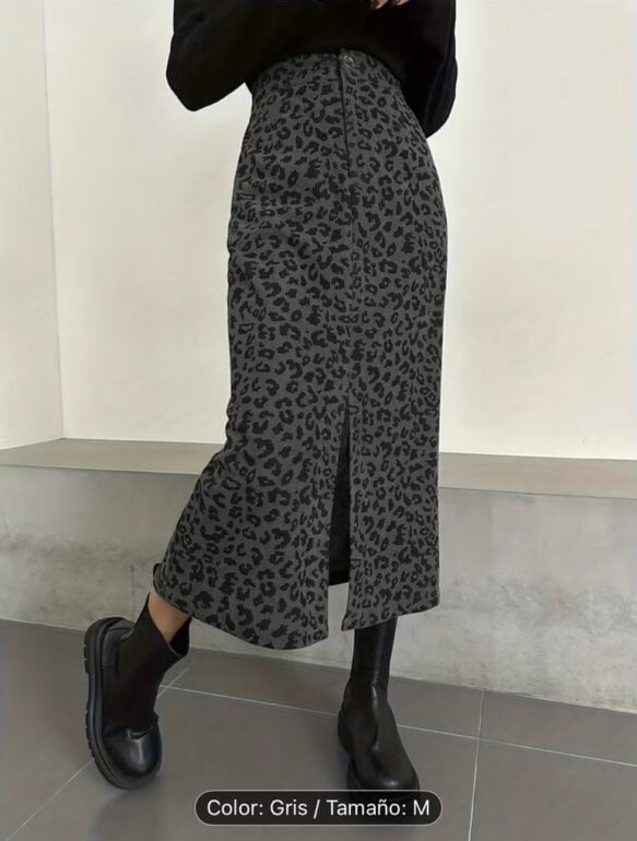 - Falda de pana con estampado de leopardo con apertura inclinada. 📌Por favor si no tienes intención de comprar no ofertes😉 Ropa casual de Primavera/Otoño. Color gris oscuro. Súper práctica y cool. 📌Si vas a ofertar que sea sólo si tu compra es segura📌