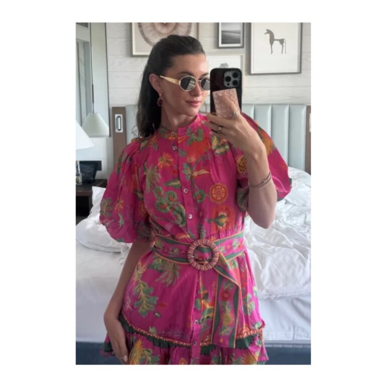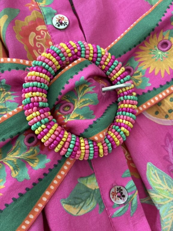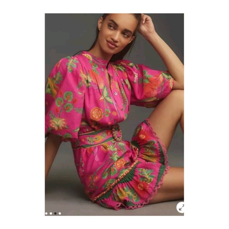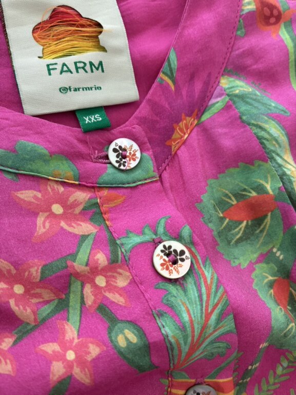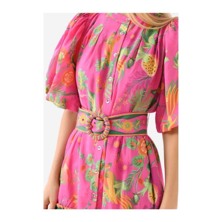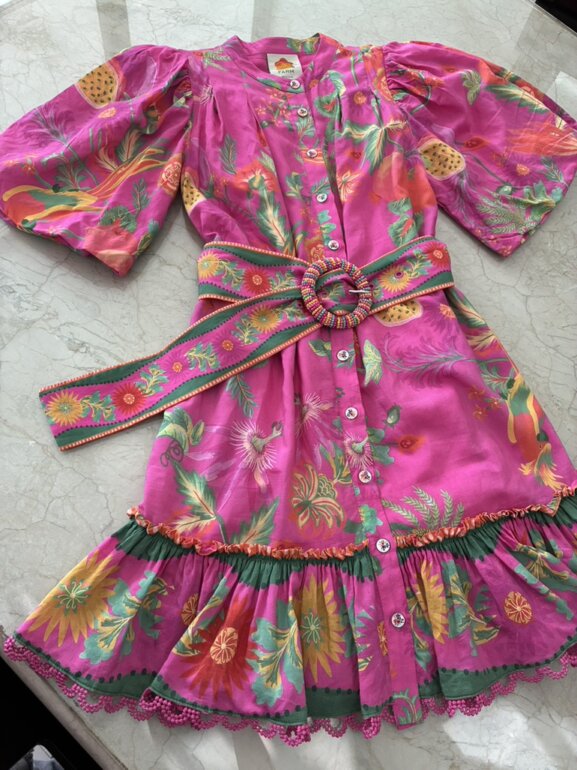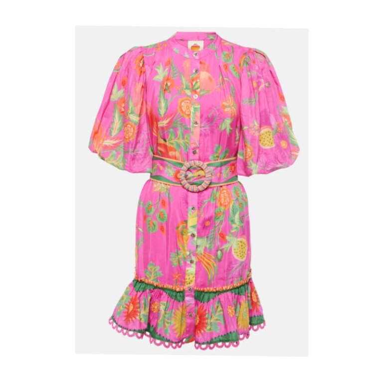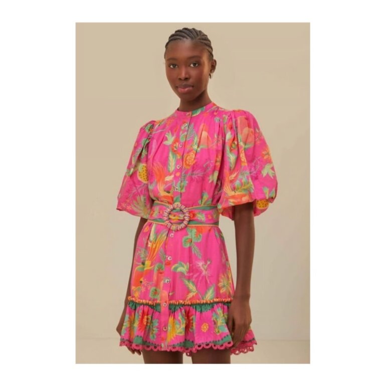 Bello vestido farm rio con cinturón con cuentas y botones con diseño floral