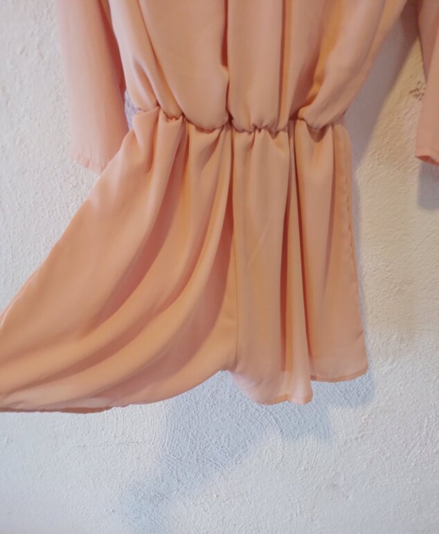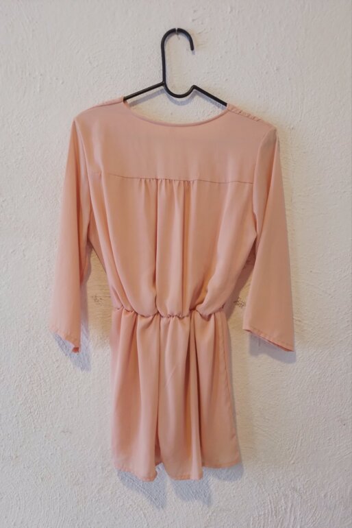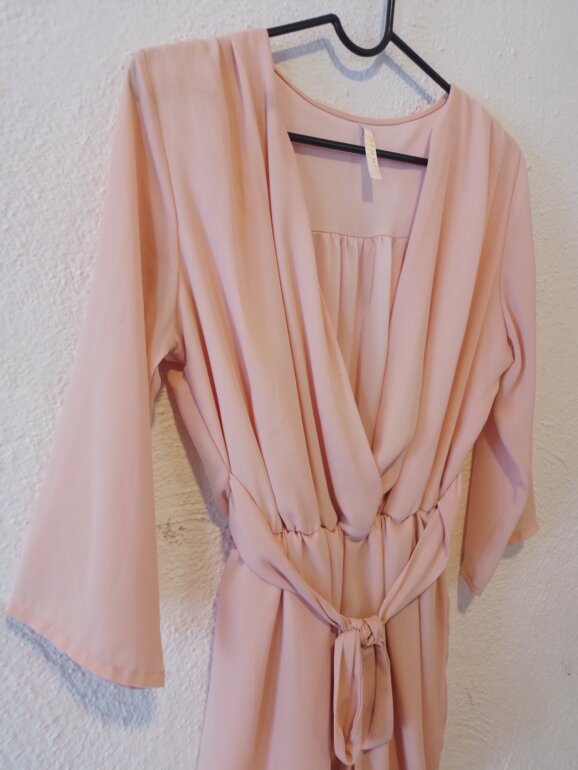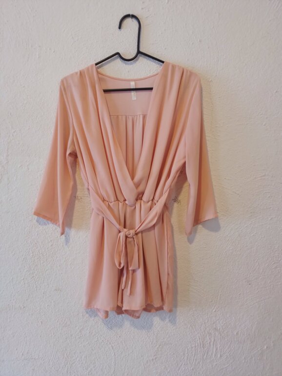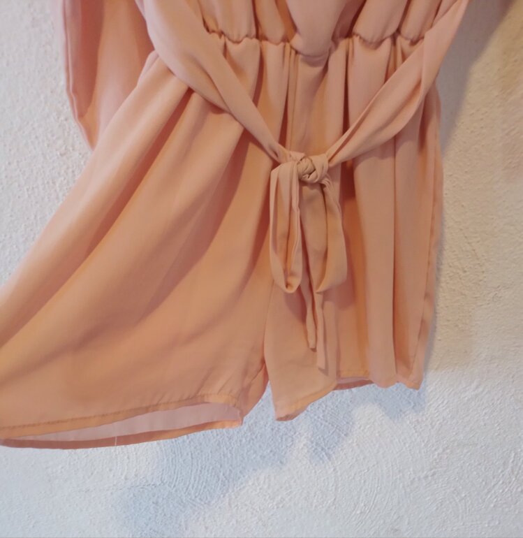 Fino jumpsuit, tela ligera con forro interior, rosa pálido, linda caída, sin detalles.