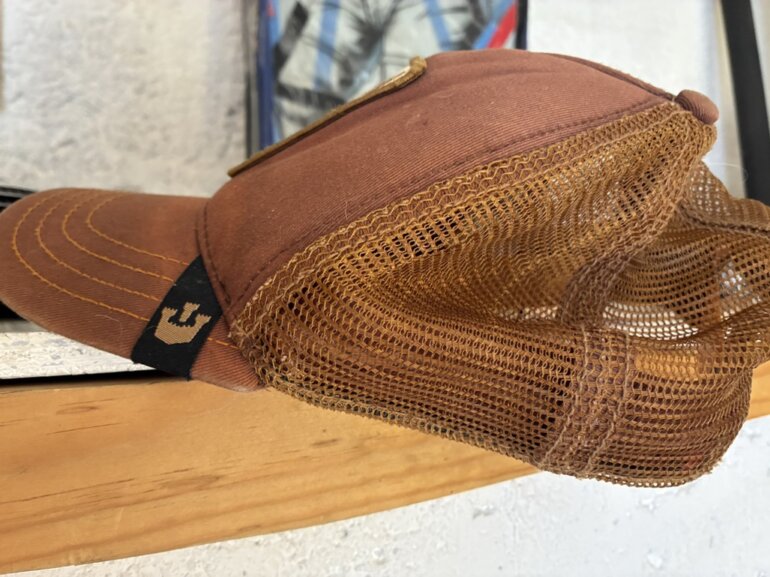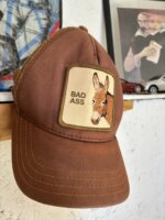 Esta es una gorra trucker de la colección Animal Farm de la marca Goorin Bros., específicamente el modelo con el parche de burro y el texto "BAD ASS"