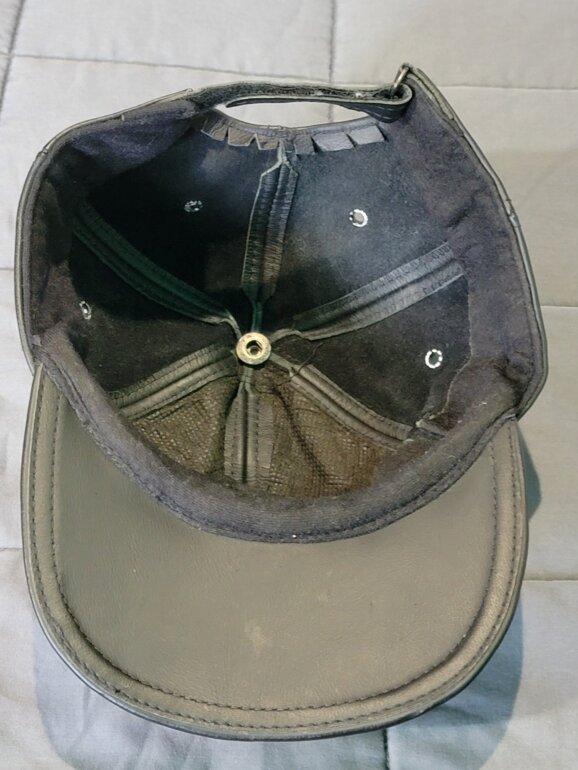 Gorra de piel, color negro esta en excelente estado, solo un poco arrugada por estar guardada
