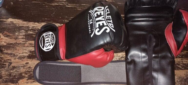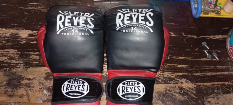 Guantes de boxeo profesionales Cleto Reyes numero 14 color rojo con negro