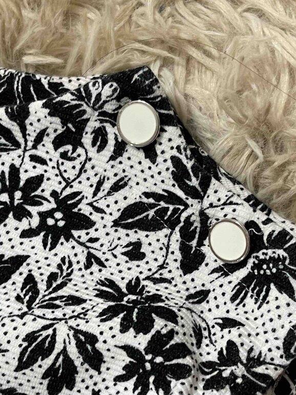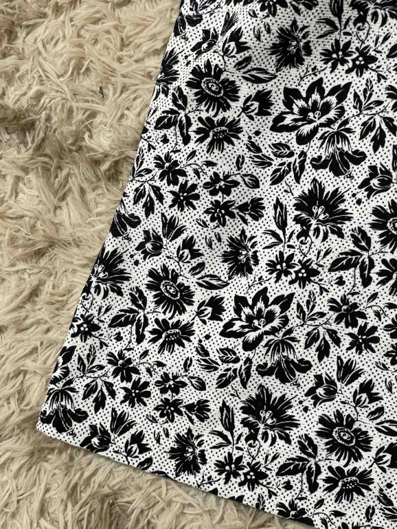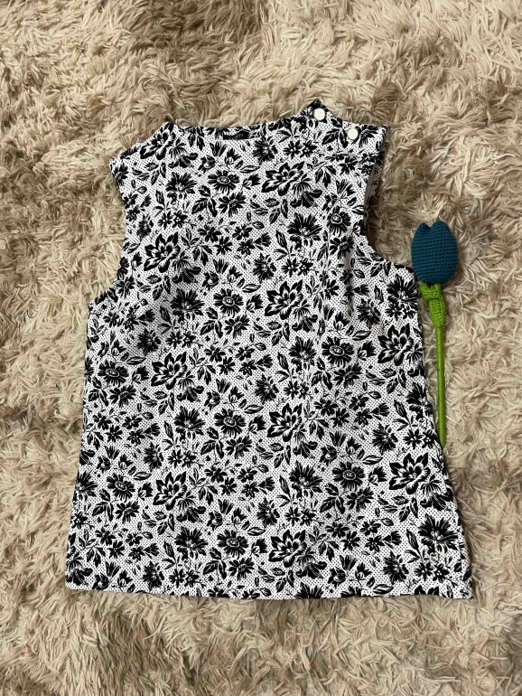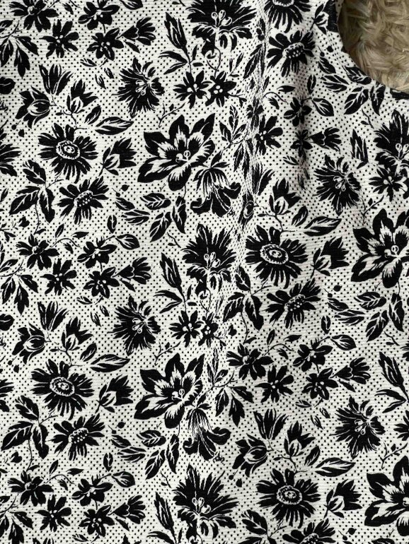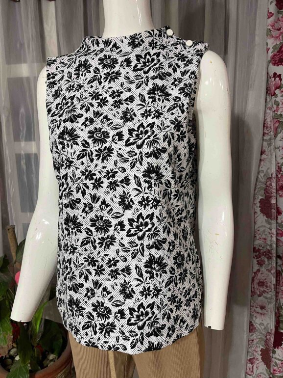 Hermosa blusa blanca sin mangas y cuello redondo, color blanco con flores negras