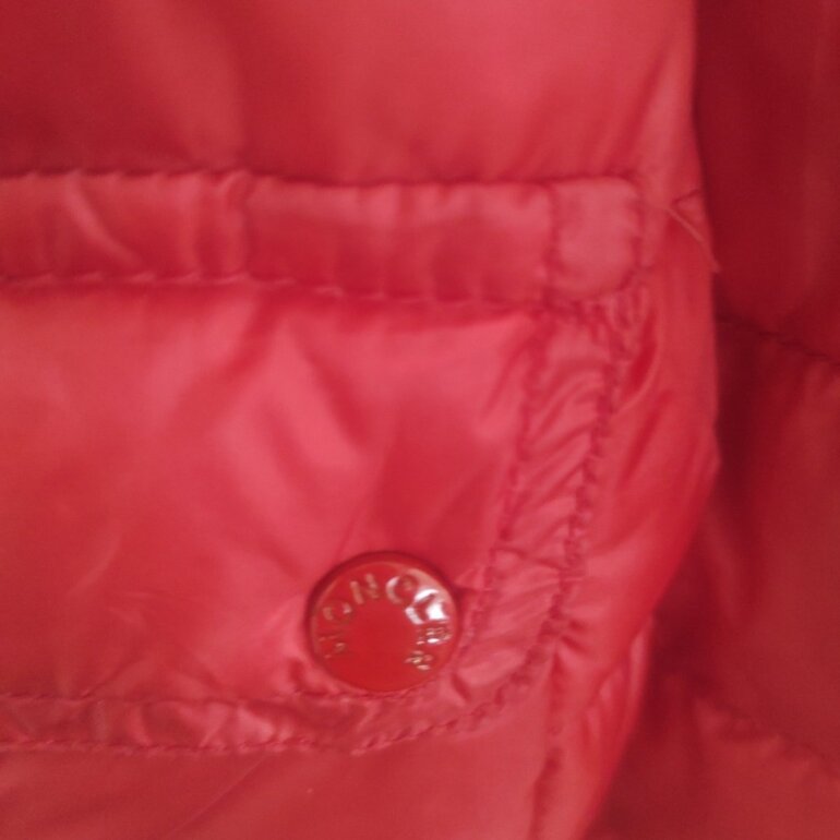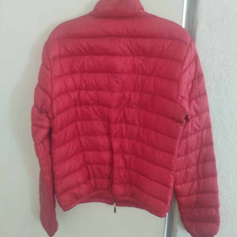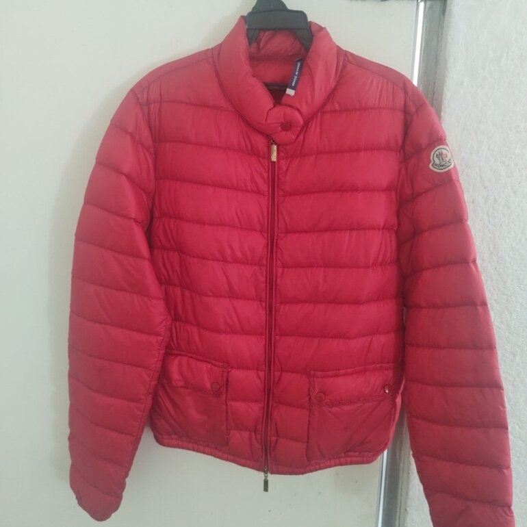 Padrísima y súper ligera chamarra Moncler, Made in Armenia, precioso color rojo cereza , talla 2