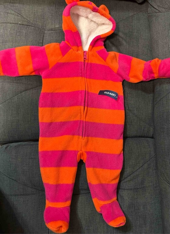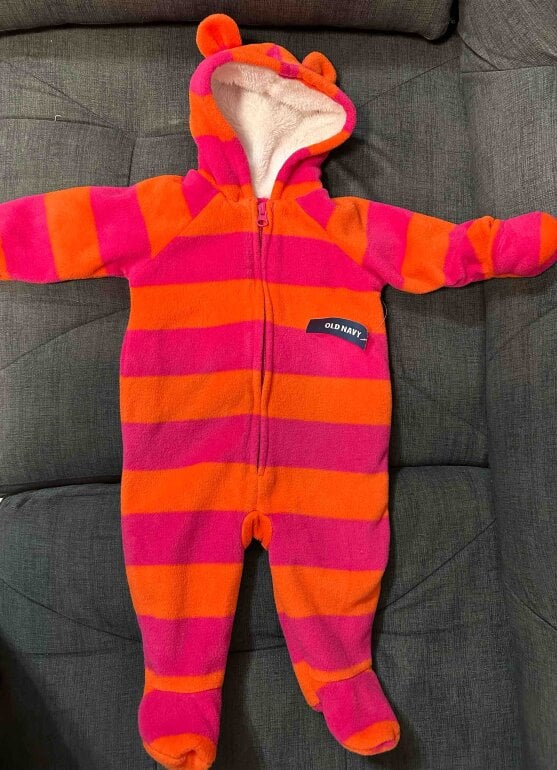 Mameluco para niña, nuevo, con etiqueta, talla 6 a 12 meses, color fucsia y naranja, ideal para tenporada de frío. No tiene detalles