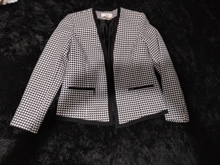 Hermoso Saco clasico pata de gallo nuevo sin etiqueta talla (10) con bolsas y un diseño super elegante.