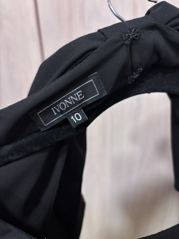 Ya subí una foto mía con el vestido puesto. Es talla 10, pero le calculo un 34 u 8 también puede quedar.