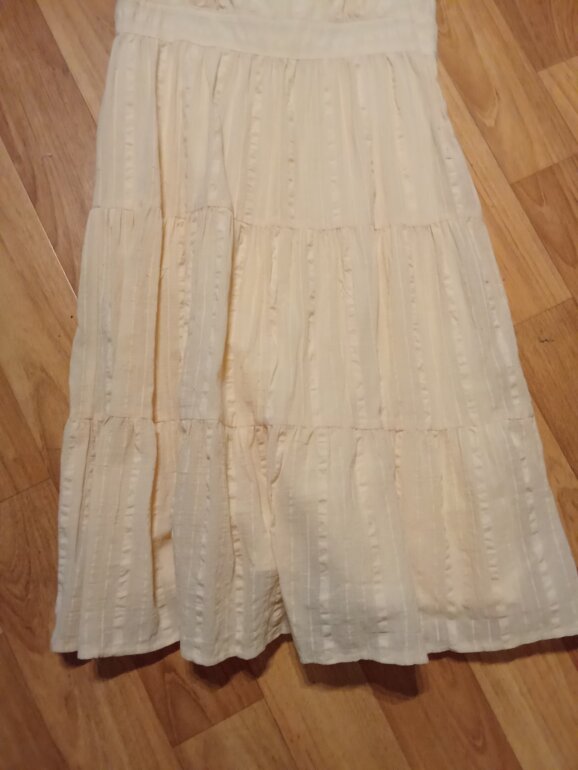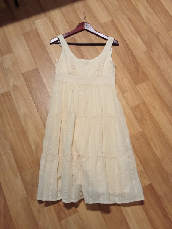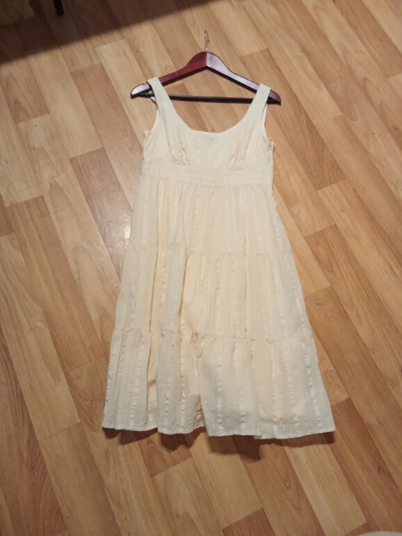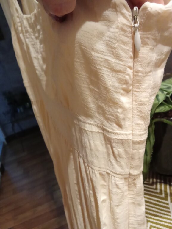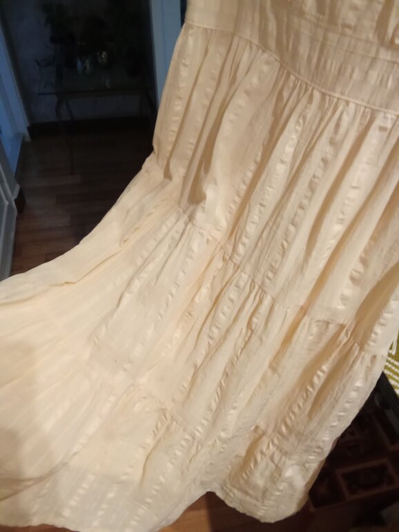 Vestido Julio talla 6, axila 43, largo 98, cierre oculto lateral, fondo interior. Este vestido es una BELLEZA, ya lo verás 😍