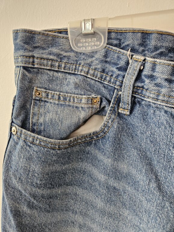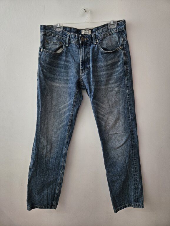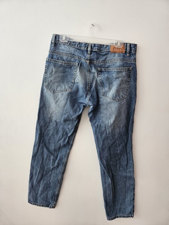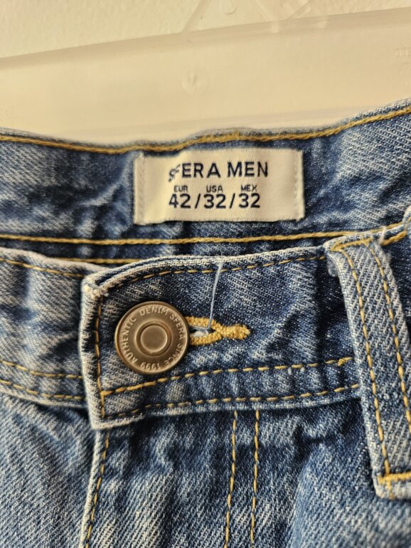 Jeans de mezclilla corte recto modelo Denim color mezclilla, marca Sfera ORIGINAL. NO tiene detalles importantes (no está roto, desgastado deslavado). Se uso pocas veces.Es talla 32 de caballero.