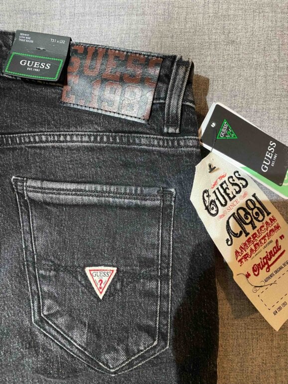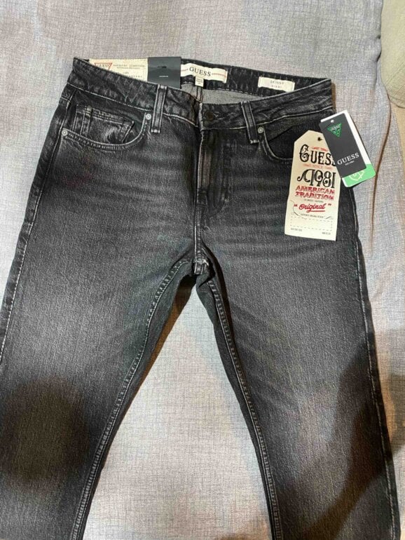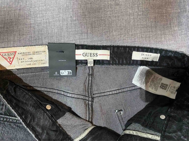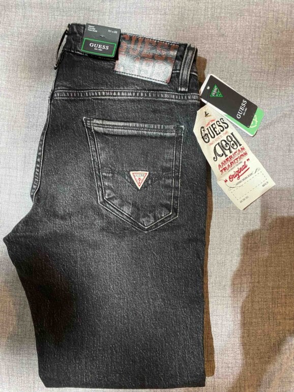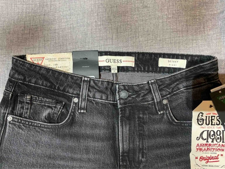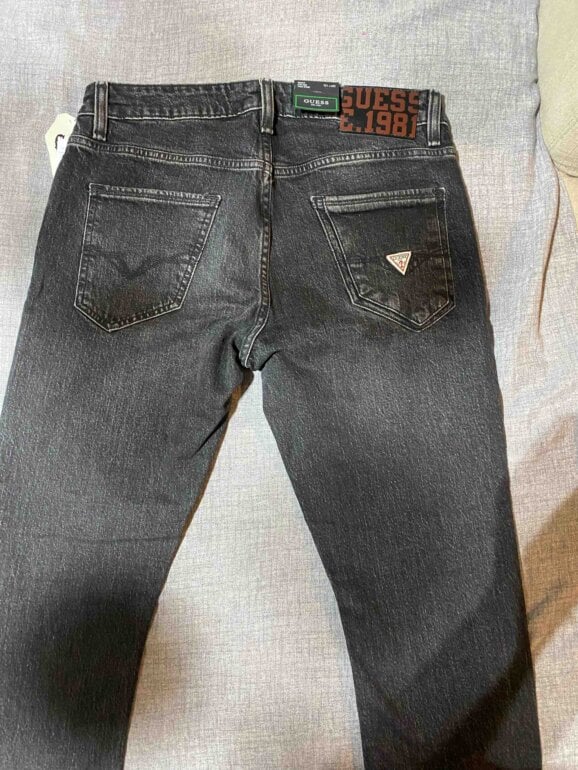 Jean Edicion Limitada 65% cotton, 34% Lyocell, marca: GUESS, Modelo: Miami, Talla: 31 Skinny, Color: carbón, made in Pakistán.