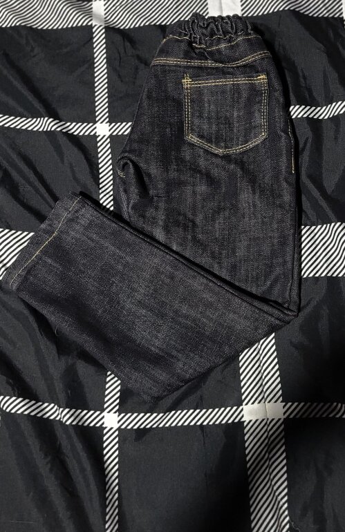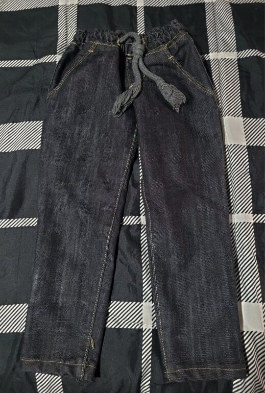 Jeans tela gruesa con resorte en la cintura y jareta. No tiene marca ni etiquetas pero es nuevo es talla 6