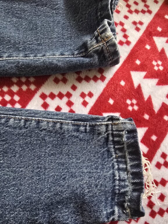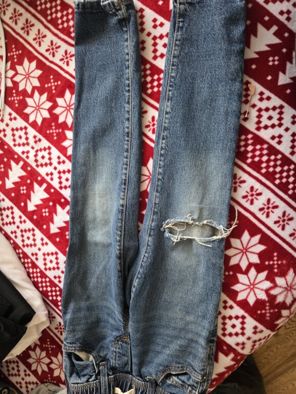 Rotos azul fuerte, detalle bastilla descosida
