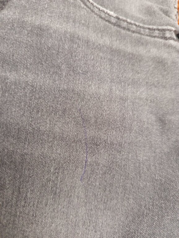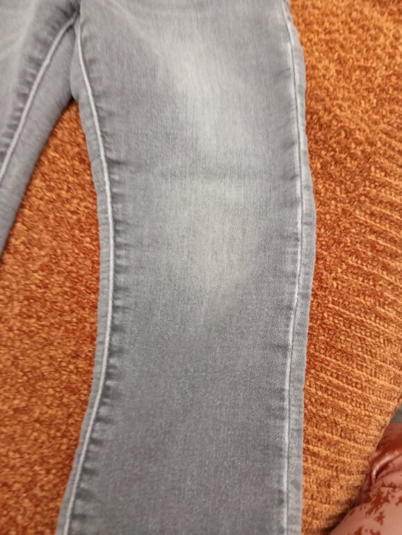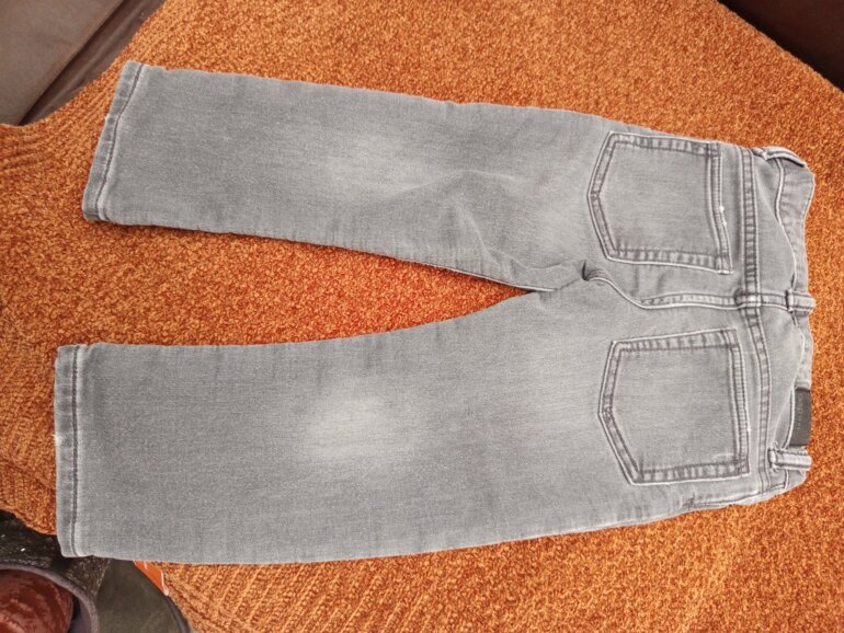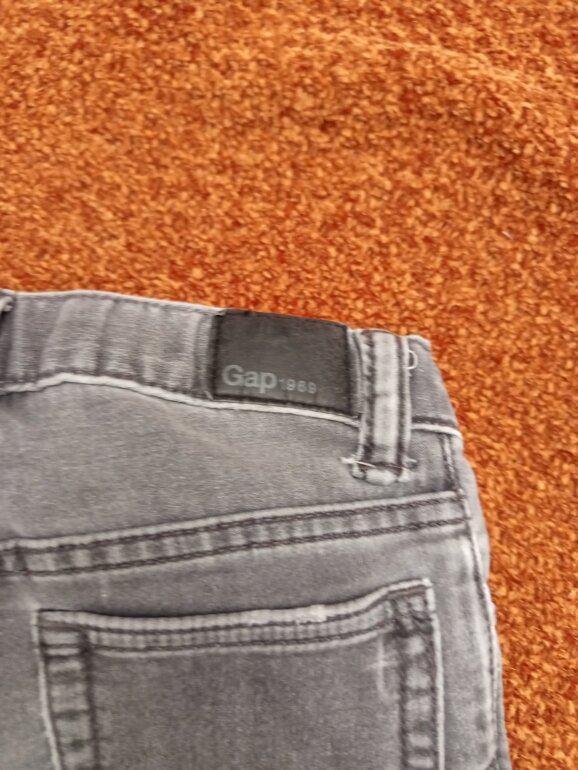 Jeans gris marca Gap talla 3a, tiene unas pequeñas manchitas y un rayón de pluma que apenas y se ve como se aprecia en las fotos