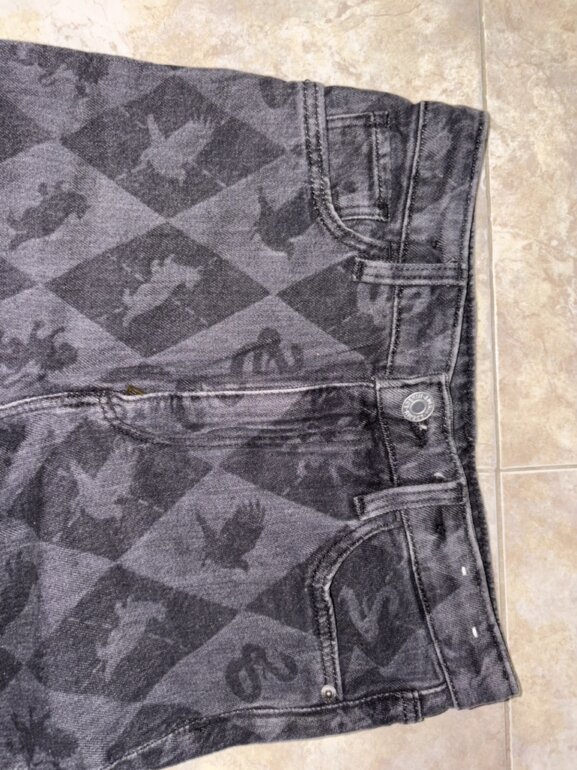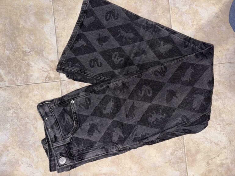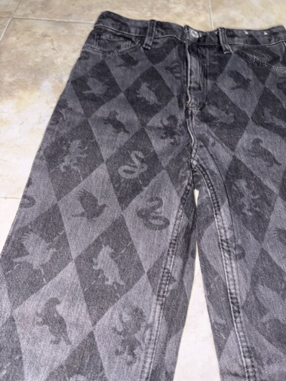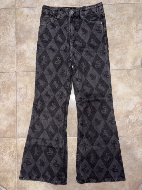 Preciosos jeans acampanados de licencia de Harry Potter. El estampado es súper bonito, los jeans estiran un poco para más comodidad.